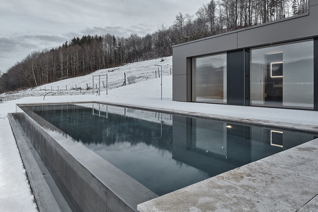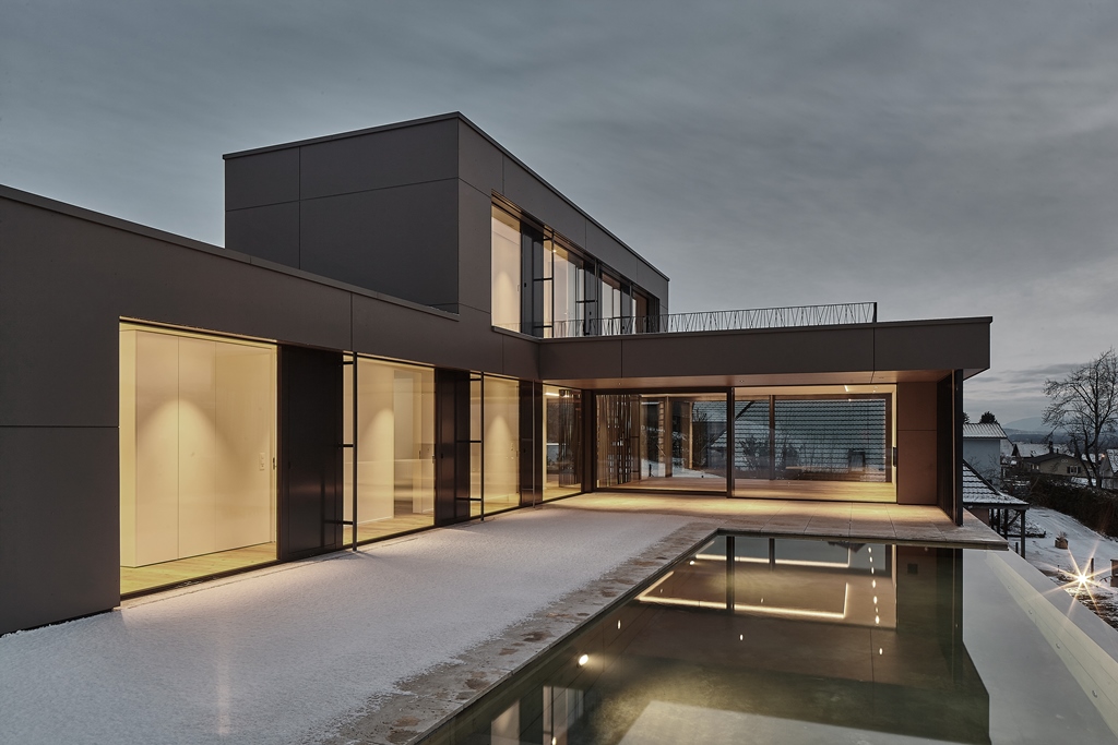 La maison et la piscine semblent être faites d'une seule pièce. La combinaison passionnante des matériaux, la formation habile des niches et le travail à différents niveaux créent une atmosphère confortable et accueillante. Le design chic, dans lequel se reflète la ligne architecturale de l'architecture, rencontre une technologie bien pensée.