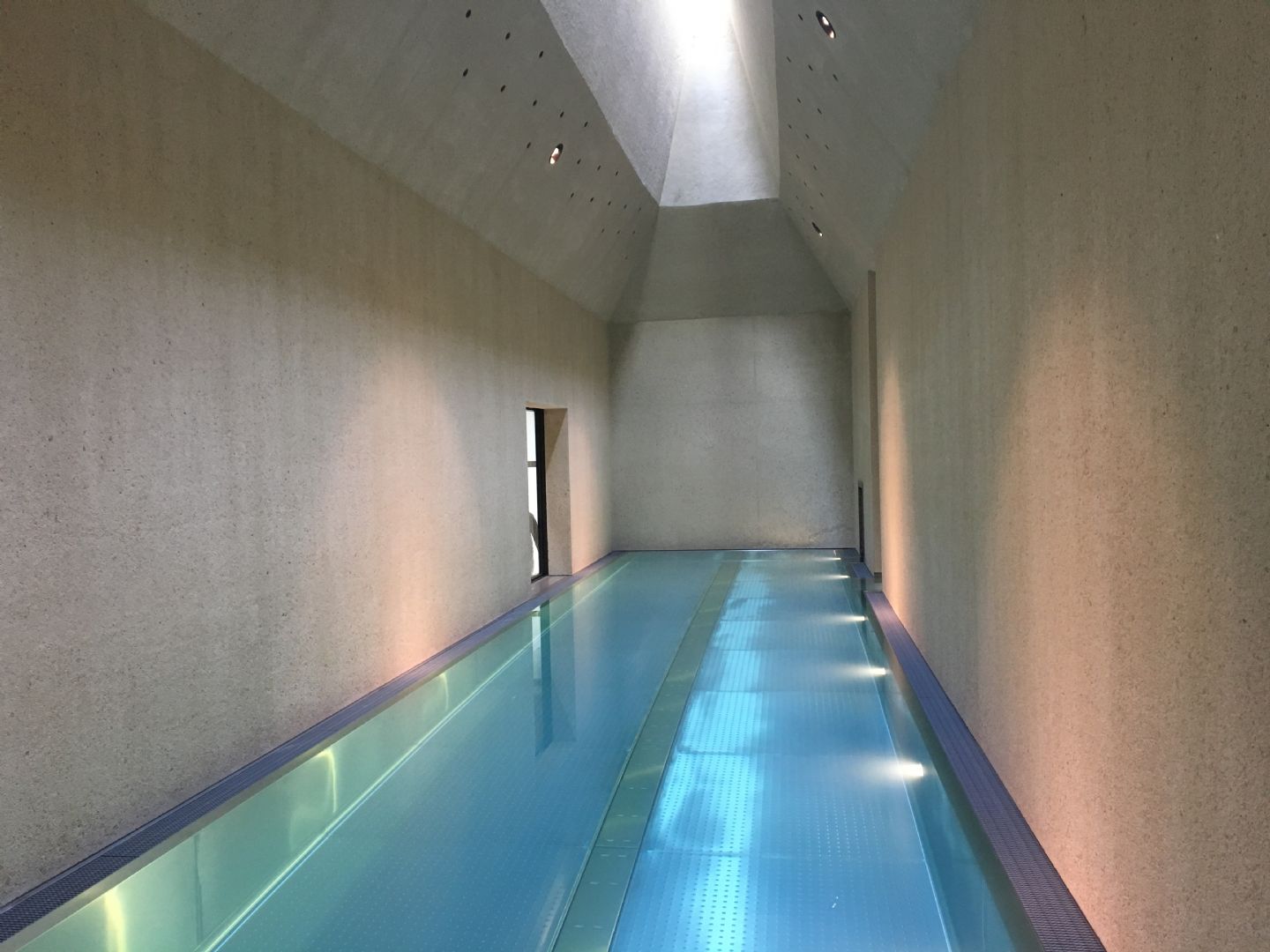 C'est de la pure créativité. Avec une forme de piscine inhabituelle qui remplit parfaitement l'espace et reprend l'architecture des environs, une oasis de baignade "tout simplement magnifique" a été créée qui allie noblesse et utilité. La natation sportive est possible ici - y compris la lumière du jour venant d'en haut et un concept d'éclairage adapté.