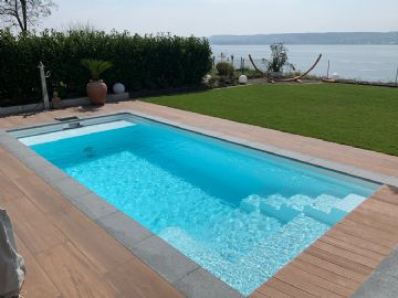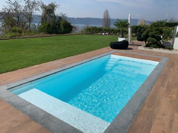 Dans les dimensions compactes de 5.50 m x 2.70 m, les nouvelles petites piscines Ancona 550 et Modena 550 de RivieraPool offrent beaucoup de plaisir de baignade pour toute la famille et transforment votre jardin en votre oasis de bien-être personnel.Ancone 550 - chic et discret