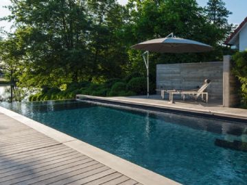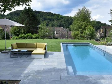 Ihr Schwimmbad ist ein "Möbelstück" im Garten. Es soll sich optimal in die Umgebung einpassen und für sich betrachtet eine Augenweide sein. Deshalb ist es wichtig, nicht nur die Beckengrösse, -form, und -farbe passend auszusuchen. Vielmehr müssen alle Elemente in Form, Farbe und Material optimal aufeinander abgestimmt sein.